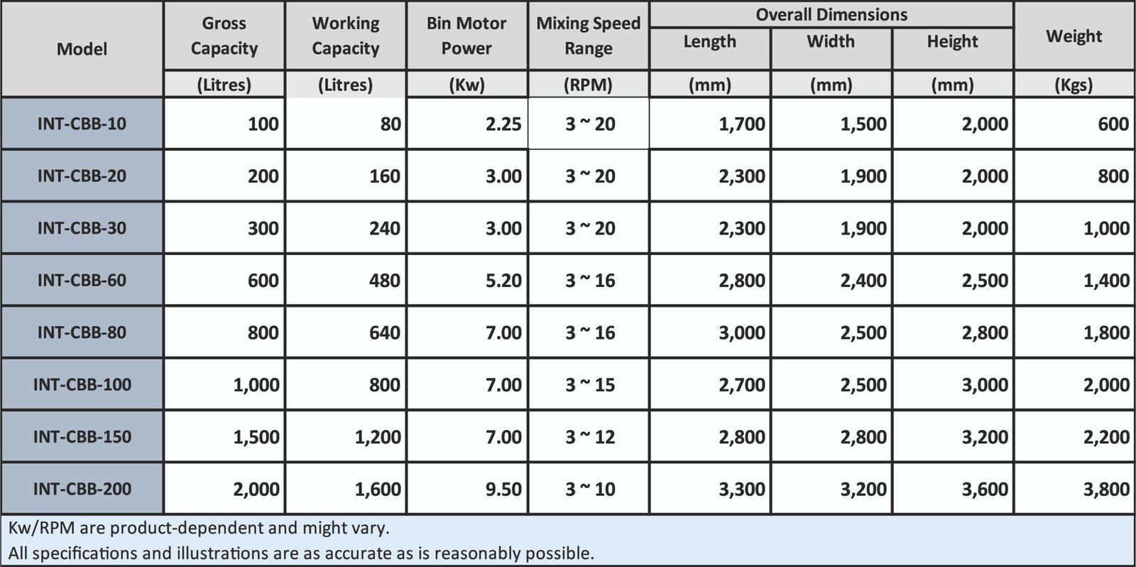 • Batch Flexibility Different batch sizes can be blended using interchangeable bins.